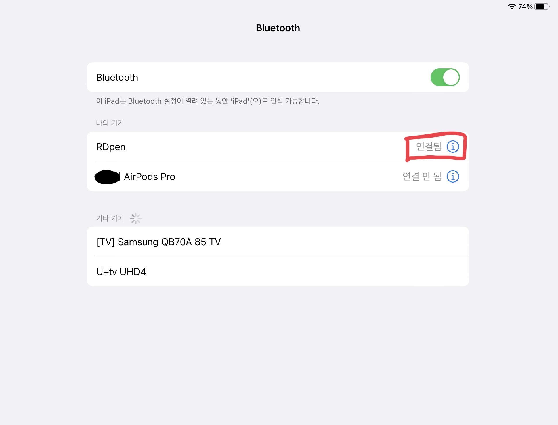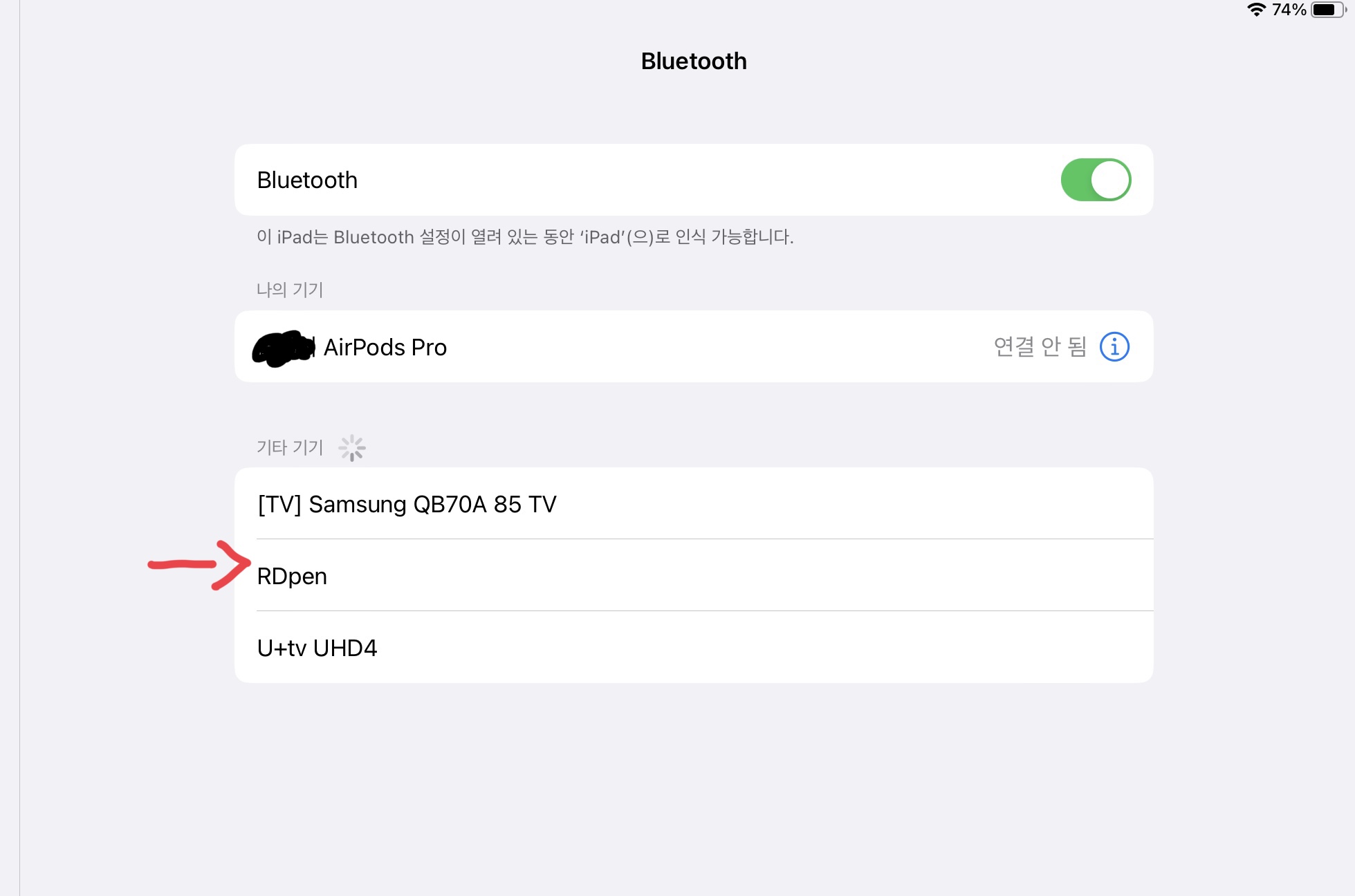 나의 기기에 RDpen이 연결됨으로 표시되면 성공입니다.