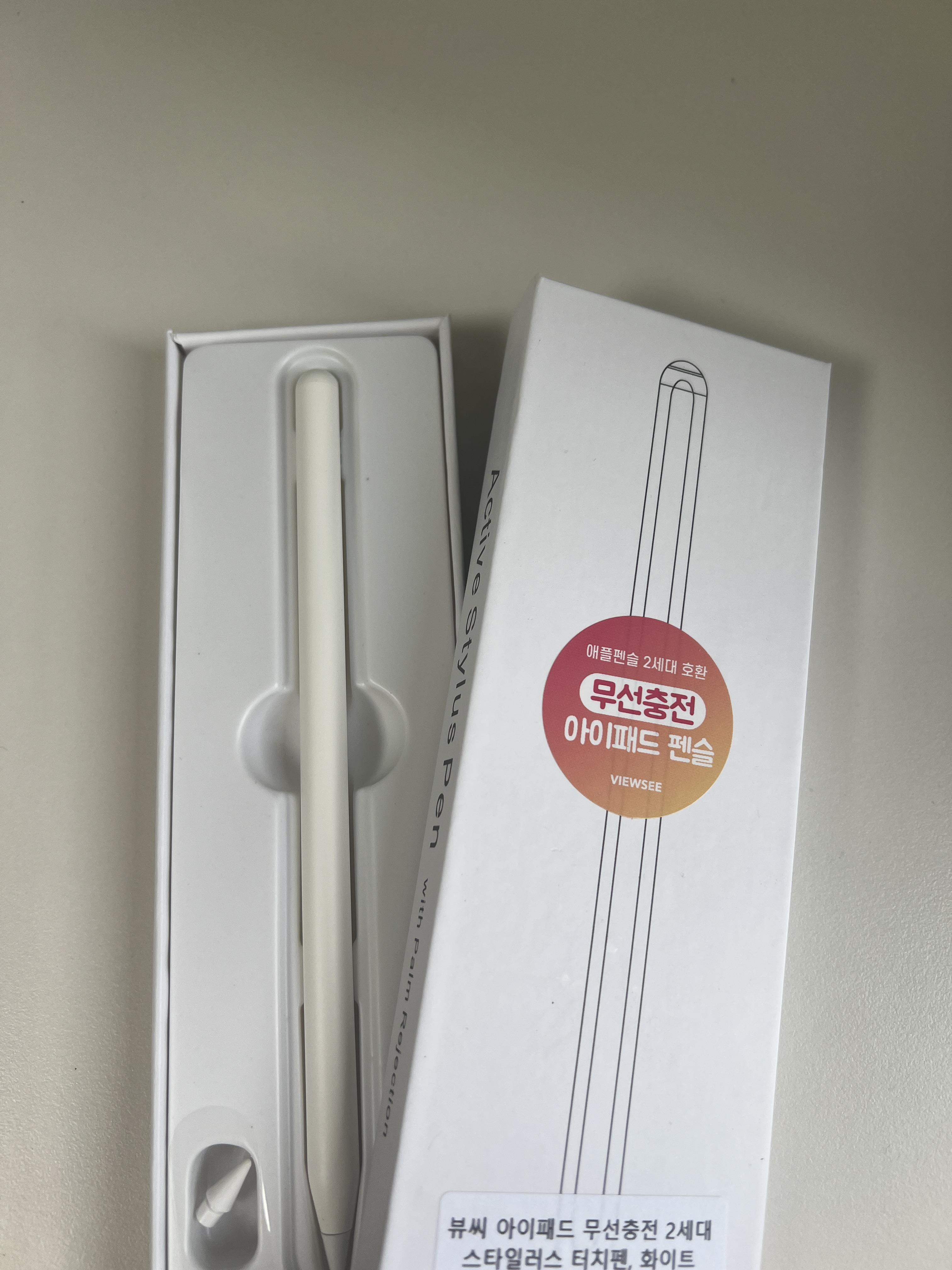 아이패드 호환 펜슬 추천 "뷰씨 아이패드 무선충전 2세대 스타일러스 터치펜 화이트" 입니다.