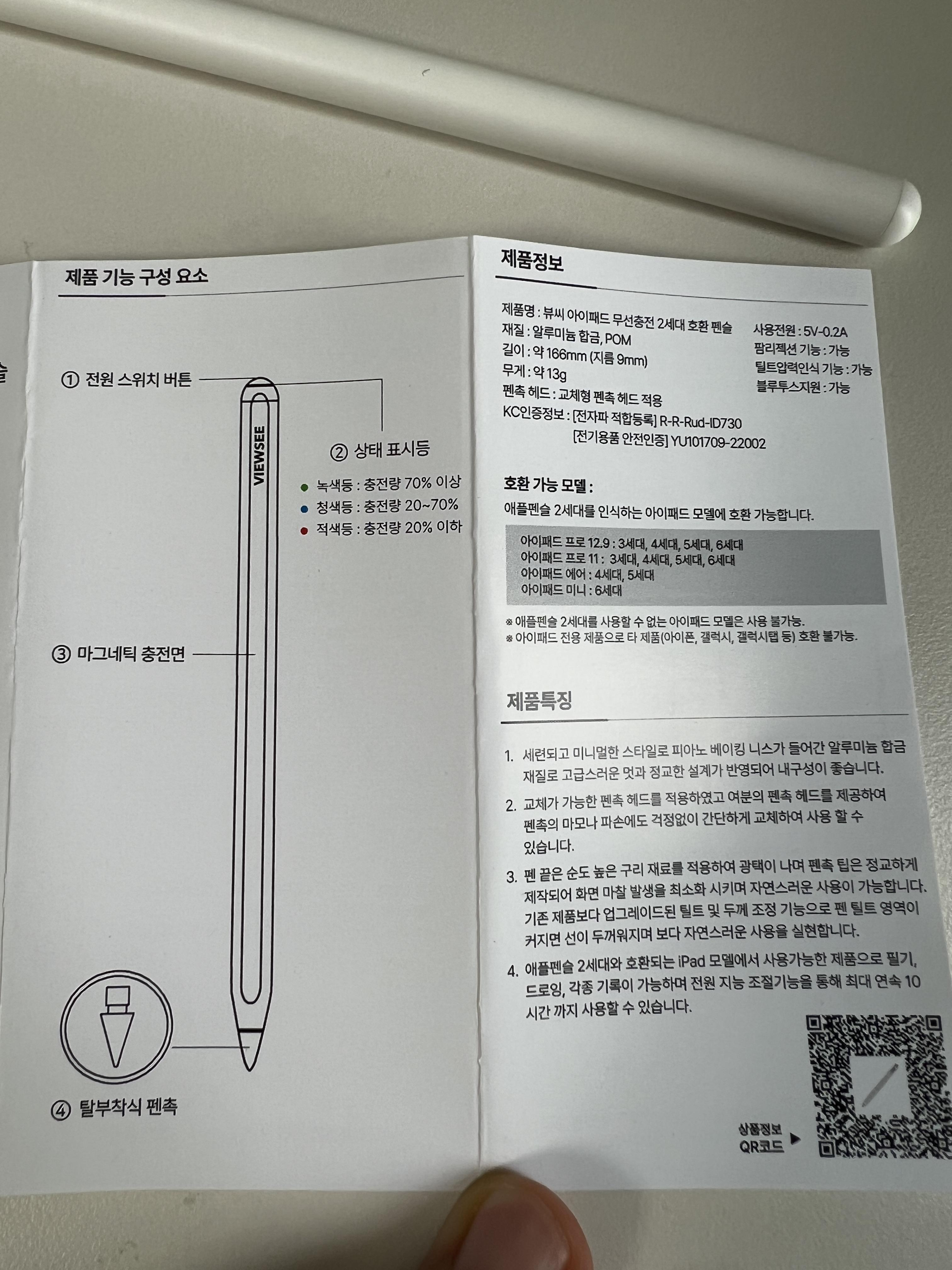 측면에 있는 VIEWSEE 로고가 없다면 정품 에플펜슬과 정말 똑같이 생겼기 때문입니다.