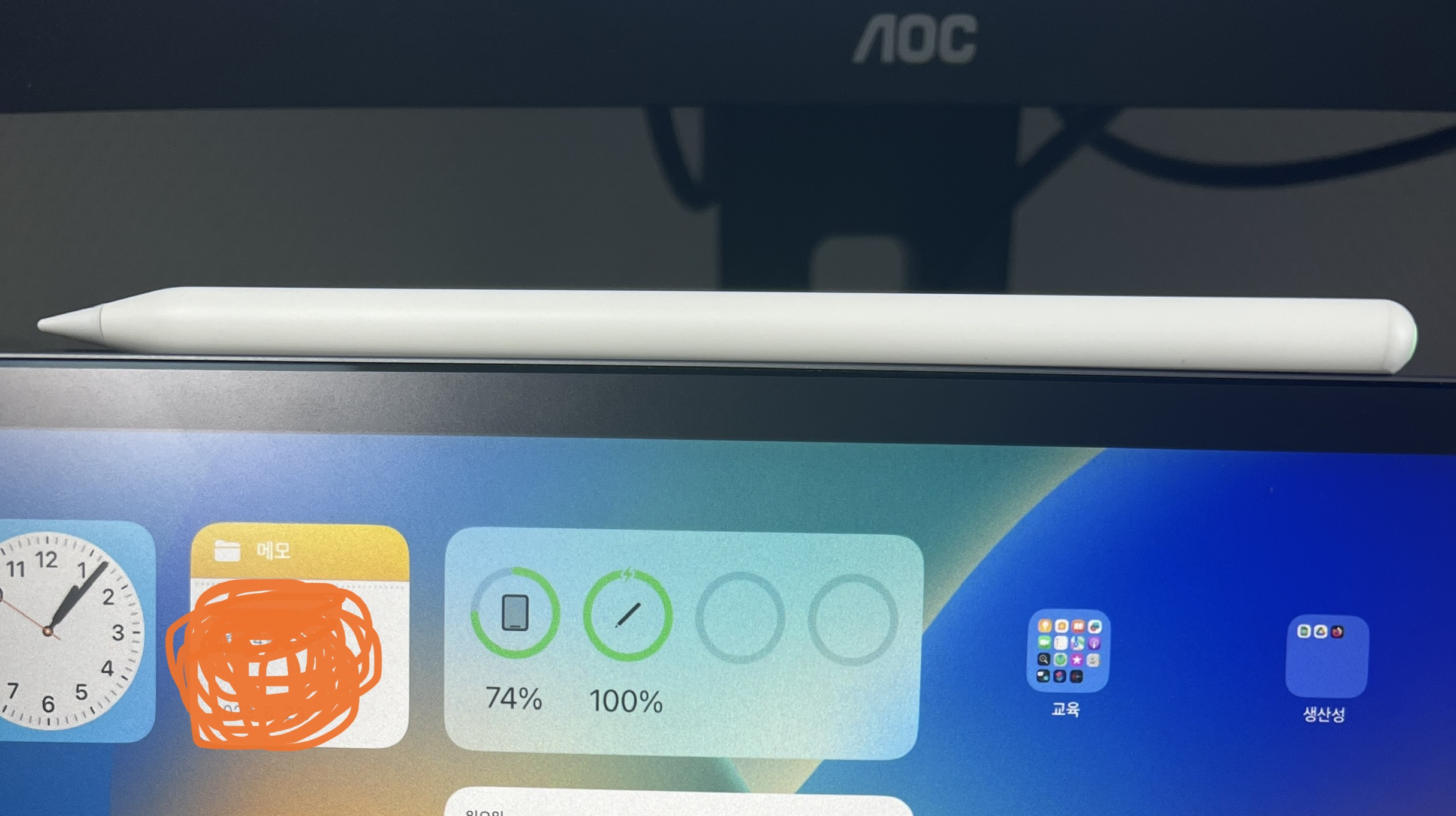 아이패드 바탕화면에 배터리 위젯을 추가해두면 아이패드 잔여 배터리를 알 수 있습니다.