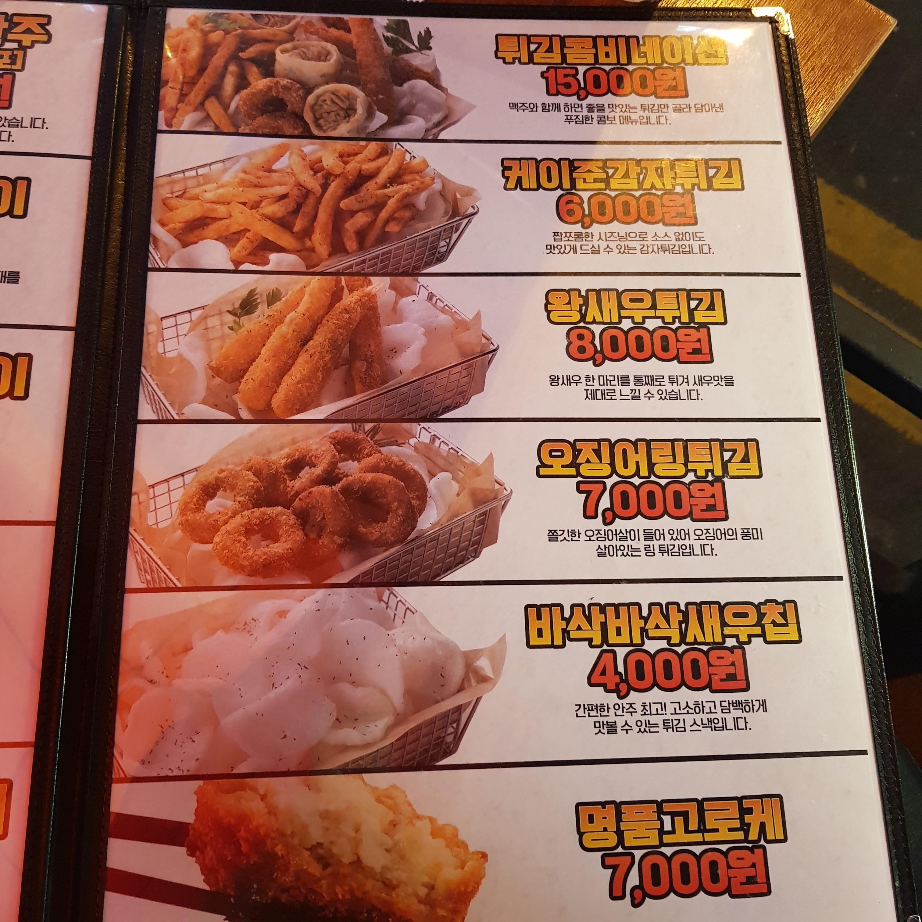 튀김종류들도 있습니다. 저는 오징어링튀김이 맛있어