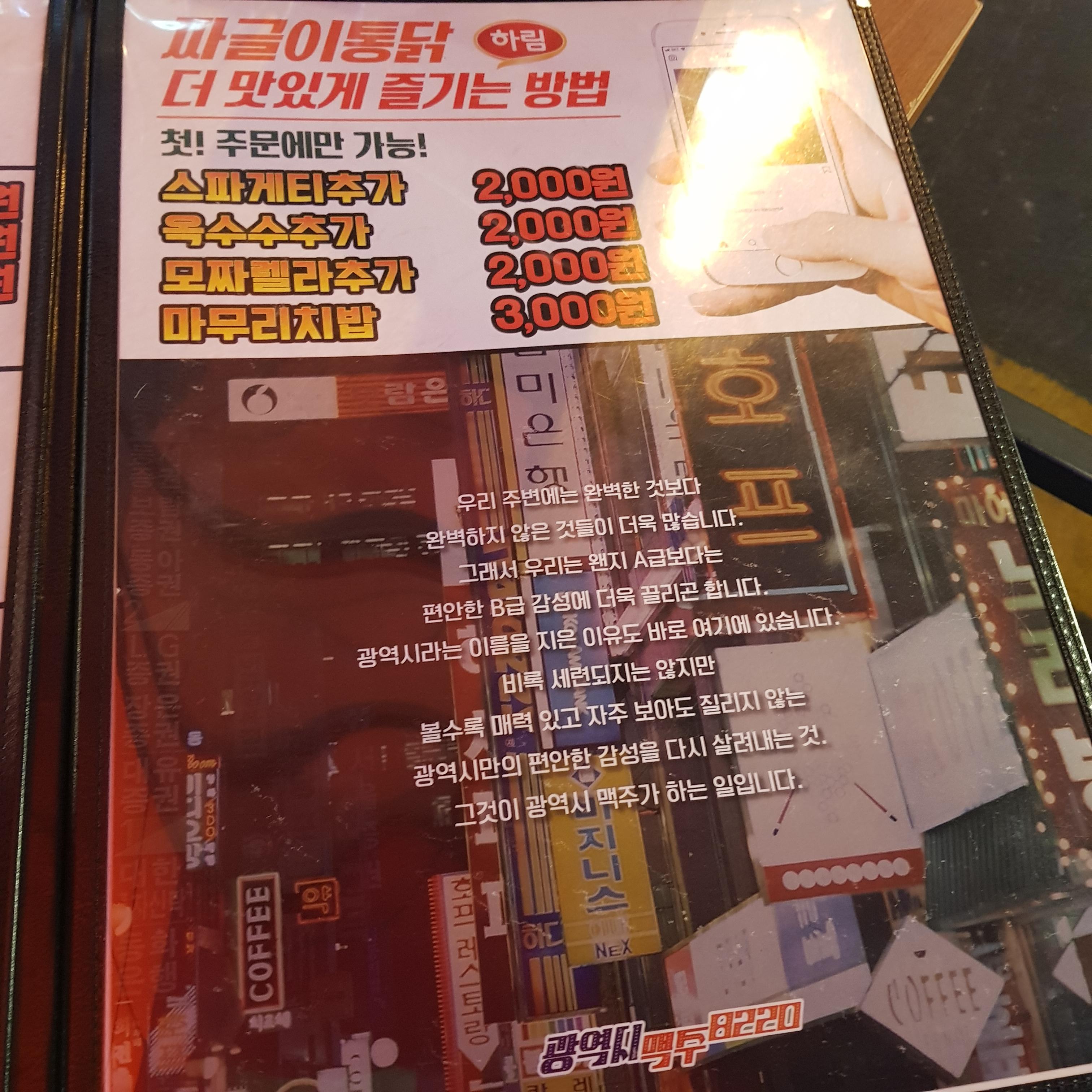부평 맛집 광역시 맥주의 메뉴판 입니다.