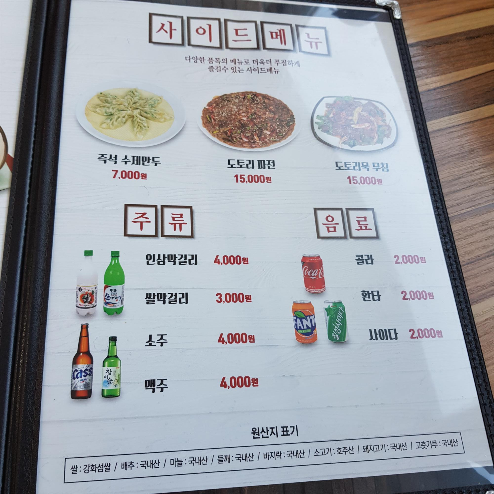 즉석 수제만두, 도토리 파전, 도토리묵 무침도 있고